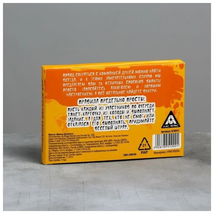 Купить игра для компании "фанты буханты" 20 карт от 100 руб. с доставкой до пункта выдачи в Анапе. Интернет магазин ДекаМаркет. Оплата при получении.